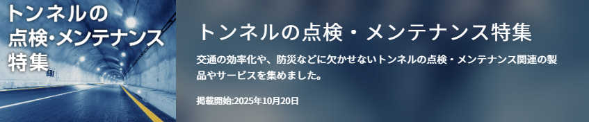 BtoB情報検索サイト「イプロス」「イプロスものづくり」を運営する株式会社イプロス(本社:東京都港区)は、「イプロス」にて、2025年10月20日(月)から「トンネルの点検・メンテナンス特集」を開始。