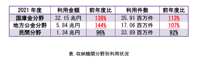 【地方公金分野は順調に増加、一方、民間分野は前年を下回る】