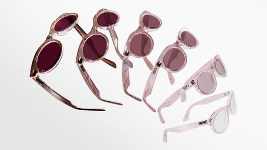 伝統的な手作業で加工されるセルロースアセテートとこの高度なイノベーションを組み合わせた本コレクションは、太陽光と同期するように設計されています。フレームのユニークなカラーとパターンは、紫外線にさらされると急速に活性化するTransitions(R)調光染料を使用して作られています。