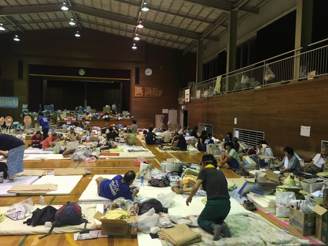 AARの高木卓美と田中晴子のチームは現在、岡山県倉敷市で被災状況とニーズの調査を行っており、同時並行で加藤勉理事(NPO法人ピースプロジェクト代表)と大原真一郎のチームがNPO法人ピースプロジェクトと協力し、炊き出しを実施しています。7月9日と10日は、避難所となっている倉敷市立二万小学校にてのべ750人に食事を提供しました。