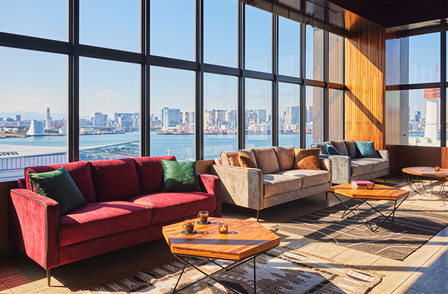 ホテルらしさを演出しているのが、シンプルながらゆったりとしたフォルム。のんびりと体を預けて贅沢に時間を過ごせそうです。内寸サイズは165cmあるので、寝転んで寛ぐこともできます。