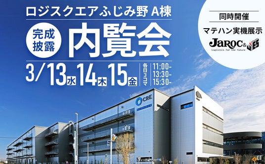 株式会社シーアールイー(本社:東京都港区、代表取締役:亀山忠秀、以下「CRE」)は、埼玉県ふじみ野市において開発を進めていた大型物流施設「ロジスクエアふじみ野A」が2024年1月31日に竣工を迎え、3月13日(水)・14日(木)・15日(金)に完成披露内覧会を開催いたします。