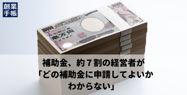 「どの補助金に申請してよいかわからない」という回答が全体の約7割を占める