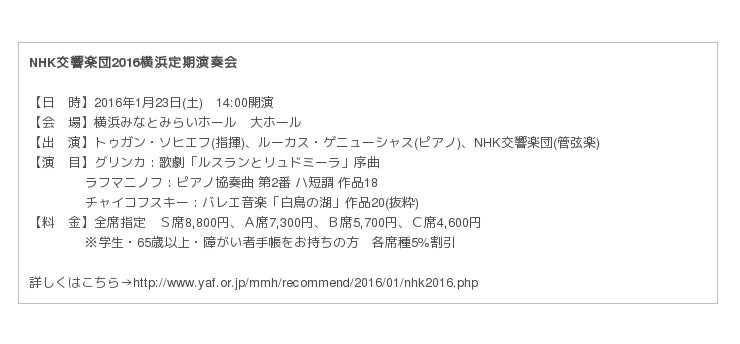 トゥガン・ソヒエフ指揮 NHK交響楽団2016横浜定期演奏会
