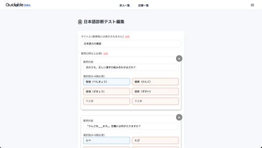 Guidable株式会社(本社:東京都新宿区、代表取締役:田邉 政喜、以下Guidable)は2025年2月12日(水)より、外国人採用サービス「Guidable Jobs」(https://guidablejobs.jp/)において、応募者の日本語能力が事前に測れる「日本語診断テスト」の機能の提供を開始します。