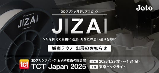 城東テクノ株式会社(本社:大阪府大阪市中央区 代表取締役:末久 泰朗)は、2025年1月末に開催される国内最大級の3Dプリンティング技術展示会「TCT Japan2025」 に出展し、新たにラインアップする4種の「JIZAI」新タイプの発表と、既存樹脂の反り抑制改質という新しいサービスのご提案を行います。