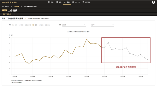 今回リリースする市場予測では、xenoBrainが提供する市場予測は、1日3,000本のニュースや3万以上の統計データを、複数のディープラーニング等のモデルで学習し、定量データ(市場需要や材料価格等)の予測を行う国内初の汎用型経済予測モデルによる経済予測です。