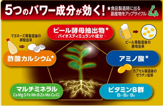 ●環境ストレスに負けない元気で丈夫な植物を育てる5つのパワー成分を配合