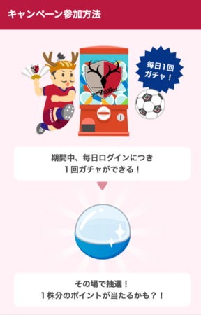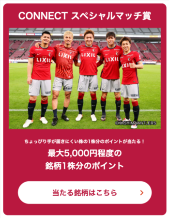 ~鹿島アントラーズ「CONNECTスペシャルマッチ」開催記念!1日1回ガチャに挑戦して、株式交換できるポイントや選手のサイン色紙をゲット~