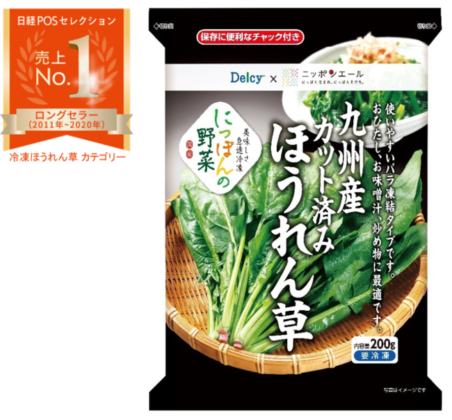 株式会社日本アクセス(所在地:東京都品川区、代表取締役:佐々木淳一、以下:当社)が発売するDelcy「九州産カット済みほうれん草200g」が、日本経済新聞社が発表した「日経POSセレクション2021『ロングセラー』」において、冷凍ほうれん草カテゴリーで売上No.1として選出されました。今後も品質管理につとめ、お客様から愛される製品づくりを心掛けてまいります。
