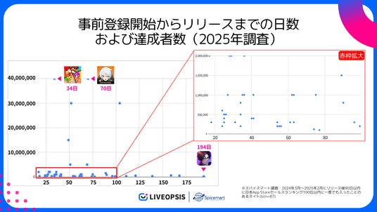 スパイスマート調査/事前登録開始からリリースまでの日数および達成者数(2025年調査)