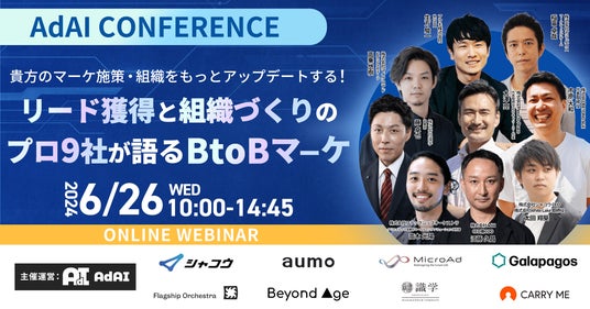 業務委託の「プロ人材」と企業とのマッチングサービスを行うキャリーミー(https://carryme.jp/agent/)を運営する株式会社Piece to Peace(本社:東京都千代田区、代表取締役:大澤亮)は2024年6月26日、株式会社AdAI主催のオンラインカンファレンス「貴方のマーケ施策・組織をもっとアップデートする!リード獲得と組織づくりのプロ9社が語るBtoBマーケ」に出展いたします。当日は代表・大澤亮が登壇し、売上を大きく伸ばしているBtoB企業のプロ人材活用事例をご紹介します。