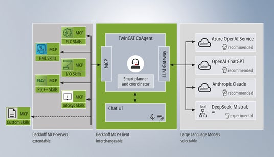 TwinCAT CoAgentは、Model Context Protocol(MCP)によりオープンアーキテクチャを実現しており、異なる言語モデルの活用や、お客様固有の拡張機能との柔軟な組み合わせが可能です。(写真提供:ベッコフオートメーション)