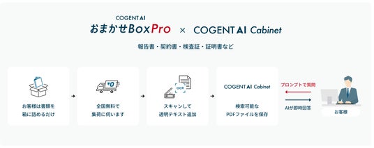 株式会社Cogent Labs(本社:東京都港区、代表取締役:エリック・秀幸・ホワイトウェイ)は、さまざまな企業文書を電子帳簿保存法(電帳法)に対応した形で保存可能な、AI電子保存ナレッジベース「COGENT AI Cabinet(キャビネット)」の提供を開始いたしました 。