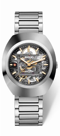 最新モデルでもこの先駆的な取り組みは健在。他の製品シリーズと同様、「スケルトン構造の技法」というラドーの創造的なコンセプトを拡げ、高品質R808自動巻キャリバーを新たに搭載しています。このバージョンは、アンスラサイトグレーのコーティングで、動作中は様々な要素によって補完されており、コントラストの素晴らしい視覚効果を生み出しています。表裏両面がサファイアクリスタルで、ゴージャスな自動巻ムーブメントのエレガントな造作を余すところなく堪能いただけます。新しい ダイヤスター オリジナル スケルトンは最大80時間パワーリザーブ機能を完備。旅行の際などに慌てる必要もありません。耐磁性ニバクロン(TM)ひげぜんまいが、極めて的確に、信頼性の高い動きで時を刻みます。全5ポジションの標準テスト要件を上回る高精度を実現。新モデルは初代モデルの全体的な外装の特徴を踏襲しているものの、形状はより洗練され、ムーブメントは緻密で現代の最新ムーブメントを搭載しています。