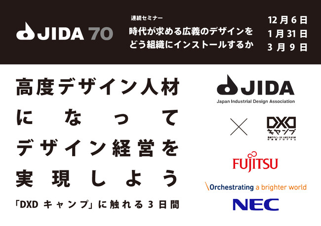 JIDAは、1952年に創立され、2022年の今年、創立70周年を迎えたプロフェッショナルなインダストリアルデザインに関する唯一の全国組織です。本セミナーは、JIDAが主催し、高度デザイン人材の育成プログラム「DXDキャンプ」がプログラムを提供するものです。