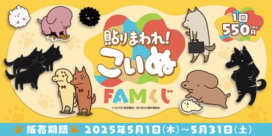 ファンエンゲージメントプラットフォーム「FAM」の企画・開発・運用を手掛ける株式会社Nagisa(本社:東京都渋谷区、代表取締役社長:横山佳幸)は、オンラインくじサービス「FAMくじオンライン」において、<『貼りまわれ!こいぬ』FAMくじ>を2025年5月1日(木)15:00より販売開始いたします。