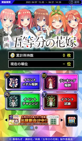 ・各イベント報酬スキンとして「中野四葉」「中野五月」「上杉風太郎」「上杉らいは」が登場