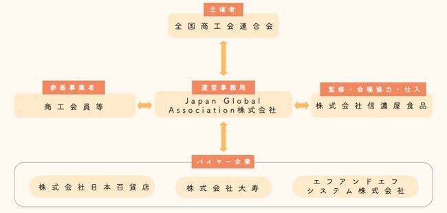 Japan Global Association株式会社は全国商工会連合会主催の新プロジェクトに運営事務局として参画し、事業趣旨に賛同する小売業4社(株式会社信濃屋食品・株式会社大寿・エフアンドエフ株式会社・株式会社日本百貨店)をチームに迎え、株式会社信濃屋食品のバイヤーを中心に、コンセプト・商品募集テーマ・商品選定基準を策定し「日本の食文化を伝える」プロジェクトを始動いたします。
