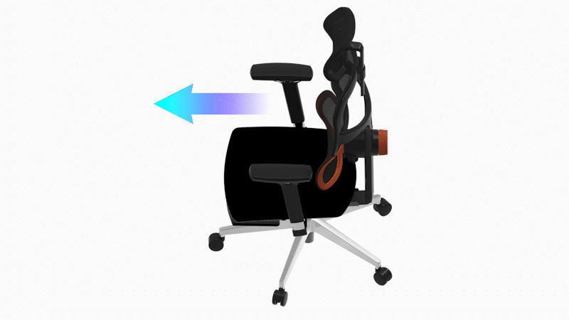 内部にあるバネの伸縮により、腰の動きに合わせて65~115mmまで自動で前後に50mm可動します。