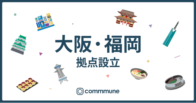 企業とユーザーが融け合うカスタマーサクセスプラットフォーム「commmune(コミューン)」と効率的なカスタマーサクセスのためのアクション基盤「SuccessHub(サクセスハブ)」を提供するコミューン株式会社(本社:東京都品川区、代表取締役CEO:高田優哉)は、大阪拠点と福岡拠点を設立したことをお知らせいたします。