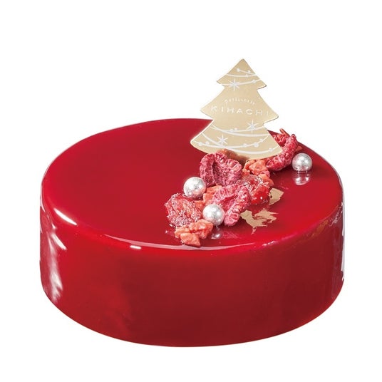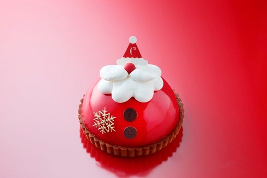 クリスマスに登場するサンタの帽子をイメージしケーキで表現いたしました。 大人にも子供の頃を思い出しながらクリスマスを愉しんでいただけるデザインにしております。 アールグレイ風味のムースの中にイチゴ、ブラックベリー、カシスをミックスしたジュレを入れ 底にはアーモンドのスポンジとクッキー生地を使用しています。 赤色のグラサージュとクリームを絞りサンタの帽子をイメージして仕上げました。