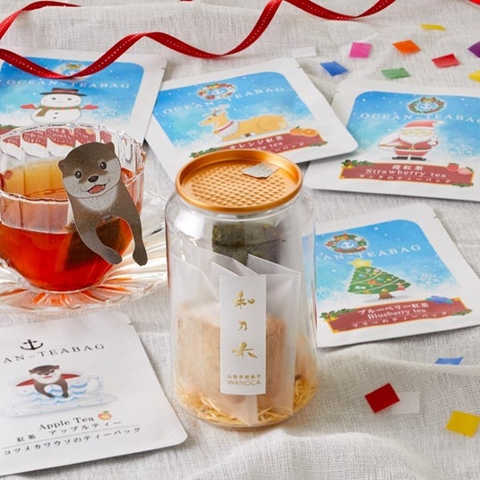 上質な抹茶のブラウニーとアールグレイクッキーには米粉を使用。缶に詰めて、かわいい紅茶とともに。