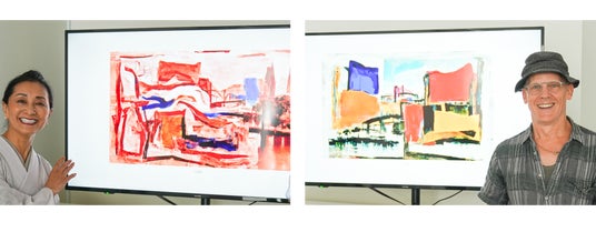 生成された絵画と共に撮った記念写真