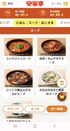 また、安楽亭公式サイトや安楽亭アプリでご案内しているお得なクーポンも、スマホオーダーシステム上でクーポン番号を登録することにより注文することができます。もちろん、食べ放題の残り時間や会計総額も簡単にご確認いただけます。安楽亭全店舗で提供している無料Wi-Fiをご利用いただけば、通信量のご心配も不要です。