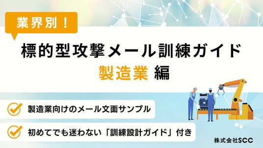 株式会社エスシーシー(本社:東京都中野区、代表:春日 邦彦、以下SCC)は、ホワイトペーパー「製造業向けの標的型攻撃メール(フィッシングメール)対策ガイド」を2025年12月23日に無料公開しました。本資料では、サイバー攻撃の動向を踏まえ、製造業が狙われやすい背景と、押さえるべき対策を具体的に解説しています。初めての担当者でも手順に沿って進められるよう、必要な準備や実施のポイントをわかりやすく整理しています。