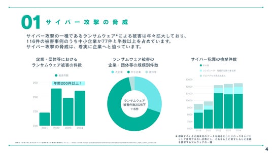 近年、ランサムウェアをはじめとするサイバー攻撃が後を絶たず、取引先1社の被害がサプライチェーン全体へ波及する事例も報告されています(※1)。