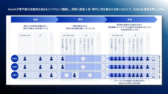 株式会社WorkX(東京都渋谷区、代表取締役:東野智晴、以下「WorkX」)は、『プロフェッショナル・エコノミーへの変革』をビジョンに掲げ、日本の生産性向上を目指します。