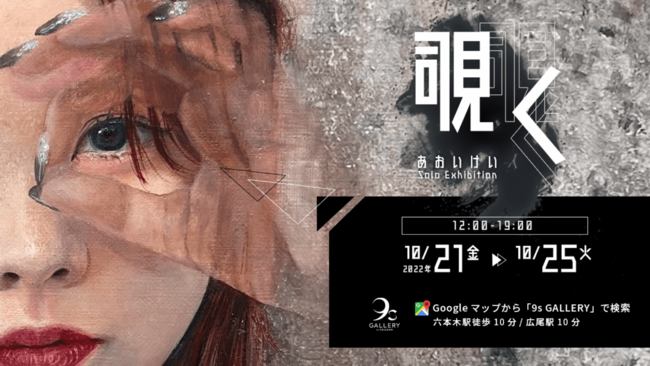 グローバルアートマーケットプレイス「TRiCERA ART」を運営する株式会社TRiCERA(所在地:東京都港区、代表取締役:井口 泰)は、「あおいけい個展 - 覗く - 」( https://www.tricera.net/ja/artclip/blog692 ) を、2022年10月21日(金) ~ 2022年10月25日(火)に、六本木・西麻布エリアのギャラリー「9s GALLERY by TRiCERA」で開催いたします。