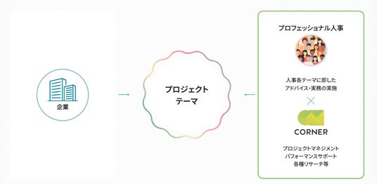 「人事を変え、組織を変え、世界を変える」のパーパスのもと、代表の門馬貴裕が2016年に創業し、人事プロフェッショナルブティック「CORNER」を提供しています。採用、労務、制度設計、組織・人材開発、人的資本の情報開示やDE&I推進など、個別多様な組織課題を解決し事業を成長させたい企業と、即戦力となるパラレルワーカー(複数の企業に関わって働く人)を繋ぎ、コーナーの人事コンサルタントとワンチームになって実働型で支援しています。パラレルワーカーの登録は1万人を突破しています。(2025年1月時点)