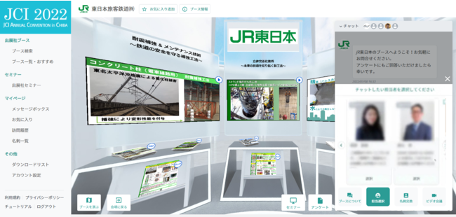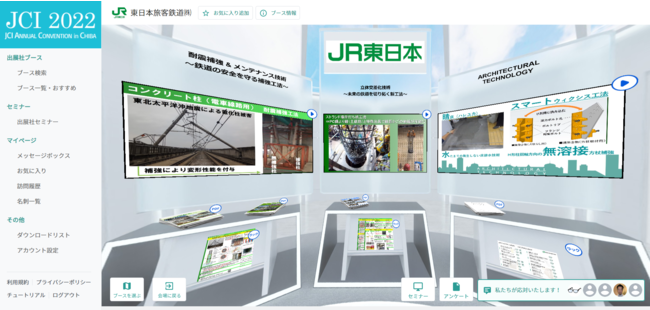 内容:バーチャル空間に配置された企業ブースにて、3D画像や動画などでの新技術の展示、