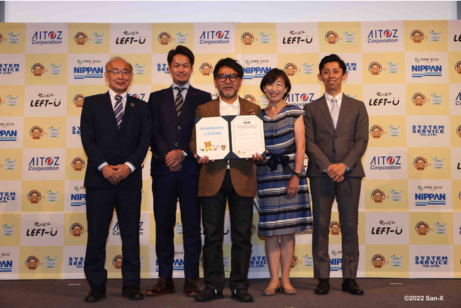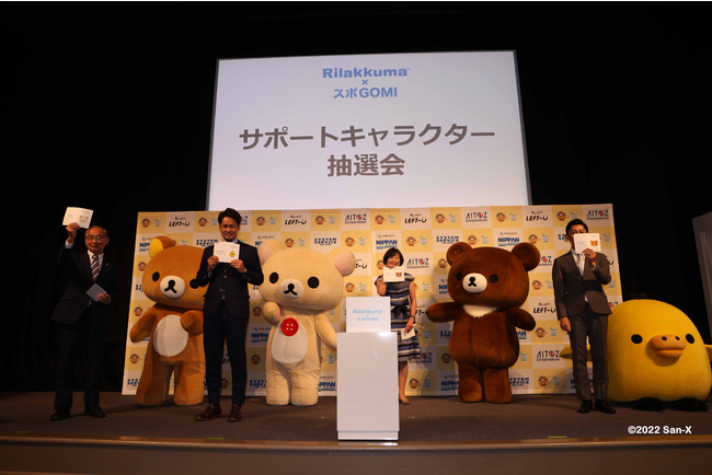 調印式では、当社より本体会への想いを述べさせていただき、無事に式が執り行われました。式終了後には、各協賛企業と「リラックマ×スポGOMI広報主任」として活躍するサポートキャラクターとのペアリング抽選会も行われ、次のとおり決定いたしました。