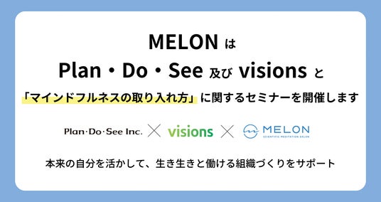 科学的な心と感情のマネジメントプログラムを提供する株式会社Melon(本社:東京都港区、代表取締役CEO:橋本 大佑、以下MELON)は、オンラインセミナー「本当の自分を掘り起こすマインドフルネスの取り入れ方~いきいきと働く組織と個人に必要なこと~」を2024年1月27日(土)に開催いたします。本セミナーは、地域の特性を活かしたホテルや飲食店などの文化施設を創造する株式会社Plan・Do・See(本社:東京都千代田区、代表取締役:野田 豊加、以下Plan・Do・See)、個人のこころざしを応援するプラットフォームvisions(本社:東京都渋谷区、代表取締役:鈴木猛之、以下visions)との共催になります。