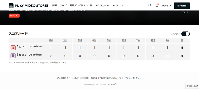 動画配信・販売サイトが構築できるプラットフォームサービス「PLAY VIDEO STORES」を提供している株式会社PLAY(本社:東京都渋谷区、代表取締役社長:黒田和道)は、この度、スコアボード機能をリリースしたことをお知らせいたします。