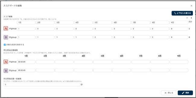 スコアに動画配信秒数を指定することで、視聴者を簡単に見どころのシーンへ誘導可能。