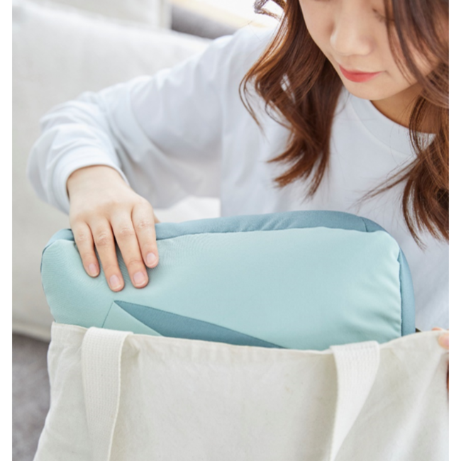 今回のミニは、通常サイズの約半分の大きさになっているため、これまで通り、ベッドやソファの上はもちろんのこと、在宅ワークや、デスクワーク中に机の上や椅子の上でそのまま休憩することが可能です。また、持ち運びできるサイズなので、自宅だけでなく職場や旅行先など、より多くのシーンでご利用いただくことが可能です。