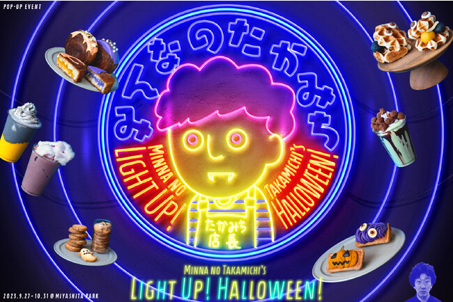株式会社じそく1じかん(本社:東京都渋谷区、代表:石井つよシ・服部峻介)は、RAYARD MIYASHITA PARK(所在地:東京都渋谷区)にて、2023年9月27日(水)~10月31日(火)の間オープンする、お笑い芸人・動画クリエイター「たかみち店長/みんなのたかみち」とコラボした期間限定POPUPカフェ「みんなのたかみち ライトアップハロウィン」のプロデュースを担当しました。