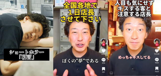 人気動画は「100年に一度の神バイトを獲得した店長」「スカート短いスタッフに注意する店長」など、いそうでいない絶妙な店長あるあるネタや、バイト先で展開される「ショートホラー」が若年層に大人気。