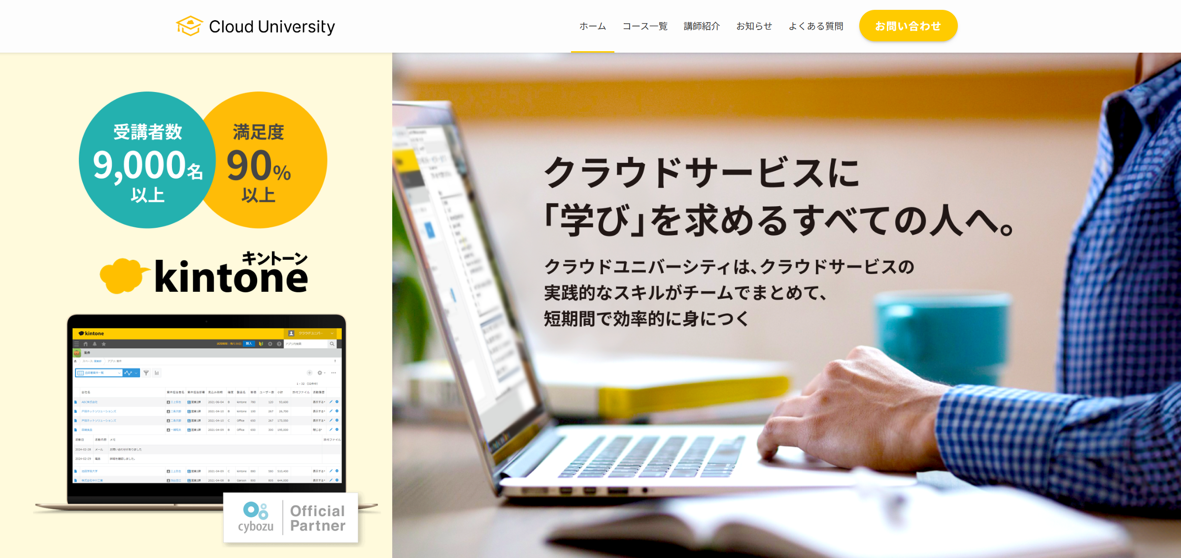 ■業界最多実績・受講者数1万人超えのkintone講座