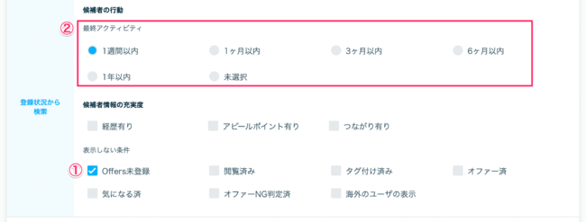 「候補者検索」機能の以下5つの項目を、大幅にアップデートいたしました。 ※1