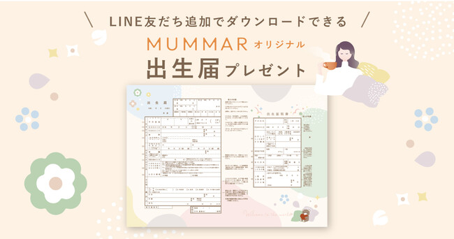 LINE友だち追加をしてくれた方には、MUMMARオリジナル出生届をプレゼント。ここでしか手に入らないデザインの出生届となっております。