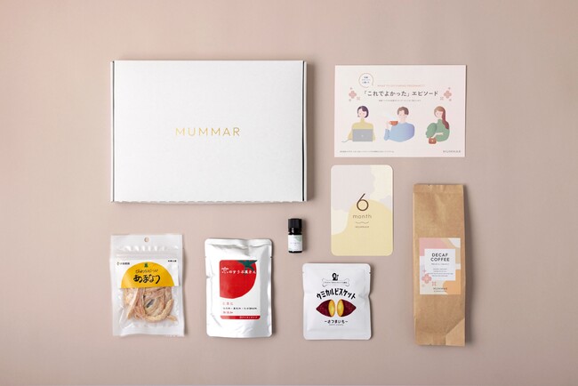 「MUMMAR」は、妊婦さん向けのサブスクリプションボックスです。京都で60年以上愛されているワールドコーヒーが焙煎するこだわりのデカフェコーヒーまたはルイボスティーと、診断に回答することで妊娠月齢や食欲などに合わせた食べ物やリラックスできるグッズが、月額2970円(税込・送料別)で毎月届きます。ポストインなので、時間や再配達を気にしなくても受け取ることができます。また、ギフトとしての購入もできるので、ご友人や奥様へのプレゼントとしてもおすすめです。