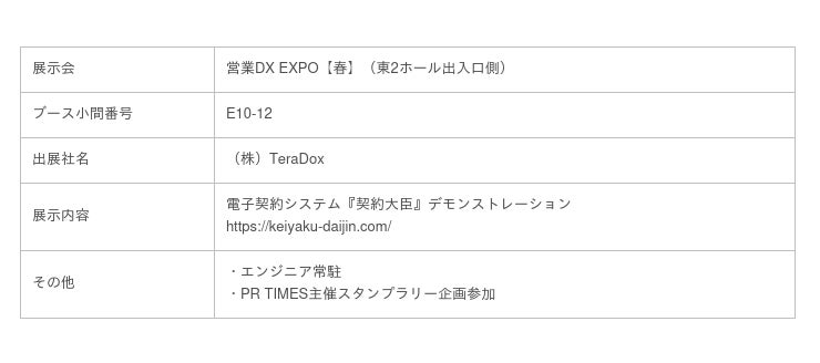 株式会社TeraDox(本社:東京都渋谷区、代表取締役:齋藤 啓司)は、2023年4月5日(水)~7日(金)に東京ビッグサイトにて開催される、日本最大級のIT展示会「Japan IT Week【春】」に出展することをお知らせいたします。