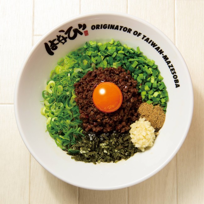 台湾まぜそばは、台湾ミンチ(唐辛子とニンニクを効かせた醤油味のピリ辛ミンチ)を極太の麺に乗せた、汁無し麺の一種です。代表的な具は台湾ミンチ、生の刻んだニラ・ネギ、魚粉、卵黄。好みでおろしニンニクを入れ、よくかき混ぜてお召し上がりください。スープがない台湾まぜそばには通常の麺を使用すると具が絡まりにくい為、湯切りをせずに麺棒でかきまぜ麺に傷をつけて粘りを出しています。粘りが出ると同時に甘みも増して台湾ミンチと相性バッチリの麺に仕上がります。また、台湾まぜそばを食べる際にオススメしたいのが【にんにく】。大量のにんにくは躊躇する気持ちもありますが・・・思い切ってトッピングすればやみつき間違いなしです。