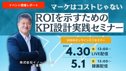 株式会社イノーバ(本社:東京都新宿区、代表取締役:宗像 淳、以下イノーバ)は、2025年4月30日に開催した無料オンラインウェビナー「マーケはコストじゃない ~ROIを示すためのKPI設計実践セミナー~」のダイジェストレポートを公開しました。