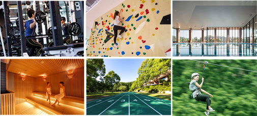 施設内の本格スポーツ施設「メディカルトレーニングセンター」をはじめ、ロングジップやボルダリングなどのスポーツ&アクティビティが宿泊料金内でご利用可能となっています。